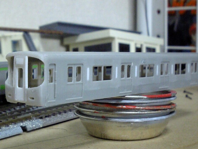9000系の塗装剥離時間を利用して8000系前面を試作中。